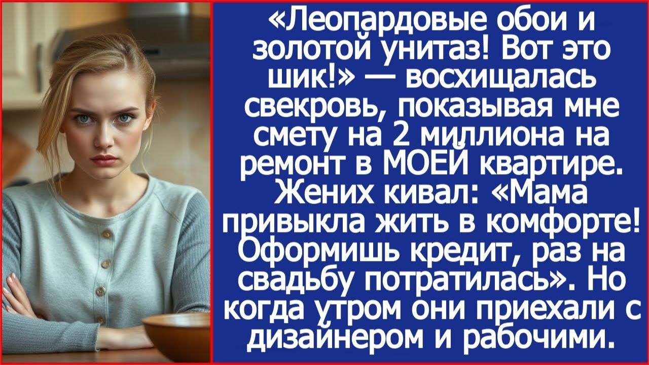 Леопардовые обои и золотой унитаз! Свекровь, протянула мне смету | ИСТОРИИ ИЗ ЖИЗНИ | АУДИО РАССКАЗЫ Истории из жизни, Аудио рассказы , Аудиокниги, Аудиокниги слушать, Истории из жизни, реальные истории, жизненные истории, личные истории, интересные истории, удивительные истории, реальные истории, жизненные истории, личные истории, интересные истории, удивительные истории, жизненные истории слушать, реальные истории из жизни,слушать истории из жизни, Жизненные истории, Аудио рассказы слушать, бесплатные истории из жизни, интересные истории из жизни, истории из жизни людей, истории из жизни слушать бесплатно, Интересные рассказы, Слушать аудиокниги без регистрации #Историиизжизни, #аудиокниги #аудиокнигислушать #аудиорассказ #интересныеистории #жизненныеисториислушать #жизненныеистории #жизненныеисториислушатьонлайн
