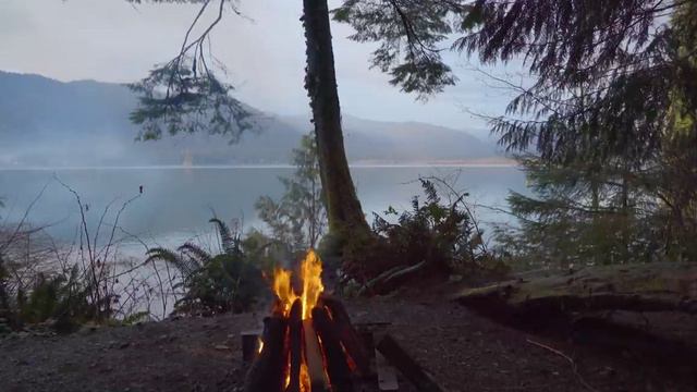 У костра на горном озере под успокаивающий потрескивающий звук