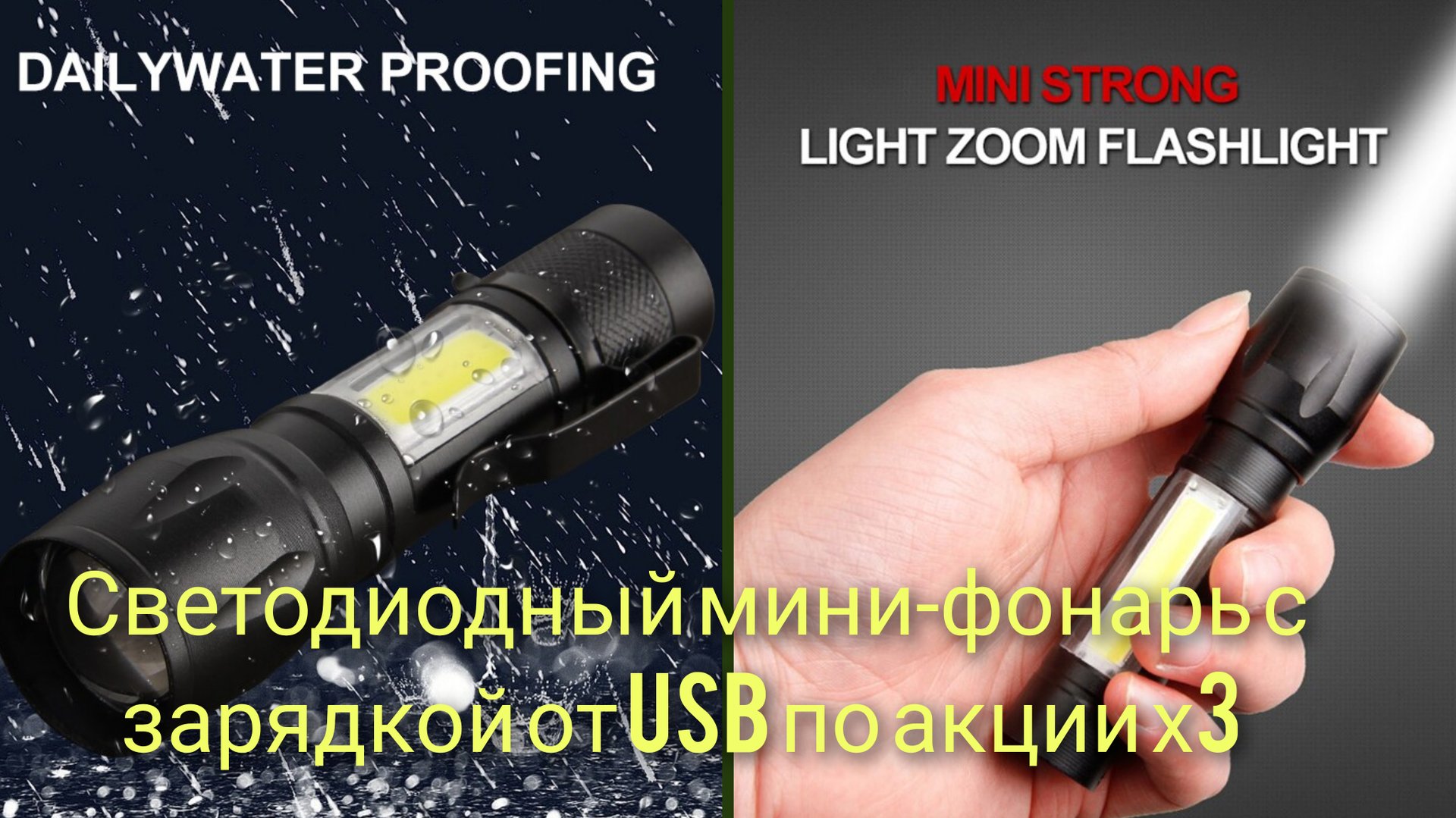 Светодиодный мини-фонарь с зарядкой от USB по акции х3