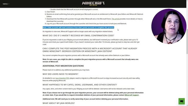 Did you or your child miss your chance to migrate your Mojang Java Edition Account for Minecraft? There are a couple of options left for you before your Java Account is lost forever. Watch my video where I read Minecraft's article about Post Migration FAQ's. BTW My 12yo son helped me to edit this very long and detailed video ? Read the original article here: https://help.minecraft.net/hc/en-us/articles/19615552270221-Post-Migration-Process-FAQ ✨ Enjoy this video here: https://www.youtube.com/watch?v=sU6i6shhiH4&list=PLjq3S5rmJADUDlYX_Y54QFUzfAZUY9qiu&index=1 Check out my Blog Post of this video with the full transcript here: www.mothermakings.com/post-migration-process-faq SUBSCRIBE & SIGN-UP FOR NOTIFICATIONS ➖➖➖➖➖➖➖➖➖➖ ❤️ YouTube - https://www.youtube.com/channel/UCdl4etSkvATBwsAuK7J7wdA?sub_confirmation=1 FREEBIES ➖➖➖➖➖➖➖➖➖➖ ? FREE Cheat Sheet - Top 10 Ways to Connect with Your Kids by Playing Minecraft https://www.subscribepage.com/mc-connect ? FREE Project Focus Planning Pages for organizing your next project: https://www.subscribepage.com/projectfocusplan CONNECT WITH ➖➖➖➖➖➖➖➖➖➖ ? Website: https://www.MotherMakings.com/Minecraft ? Email: maggie@mothermakings.com ? Facebook: https://www.facebook.com/MamaMagpieMC Facebook Group: The Minecraft Hearth: A Supportive Group for Mom’s and Women who Play or Want to Play Minecraft with their Kids https://www.facebook.com/groups/579614090255403 ? Instagram: https://www.instagram.com/MamaMagpieMC ? YouTube: https://www.youtube.com/channel/UCdl4etSkvATBwsAuK7J7wdA #minecraft #minecraftnews #mojangminecraft ⏳ TIMESTAMPS ➖➖➖➖➖➖➖➖➖➖ 00:00 - Intro 00:56 Post-Migration Process FAQ's 01:29 In This Article 02:11 I Missed my Chance to Migrate, What Now? 03:07 Next Steps to Take 05:09 Haven't Received my Email Confirmation Code 05:34 Can I Use a Microsoft Account that Already Owns Bedrock or Java Edition? 06:32 Why did Users Need to Migrate? 06:59 What happened to my Capes, Skins, Username and Other Content? 07:53 What about my Java Worlds? 08:46 What do I Gain from going through the Post-Migration Process?