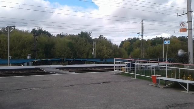 Электровозы 2ЭС6 с пустыми платформами и крытым вагоном