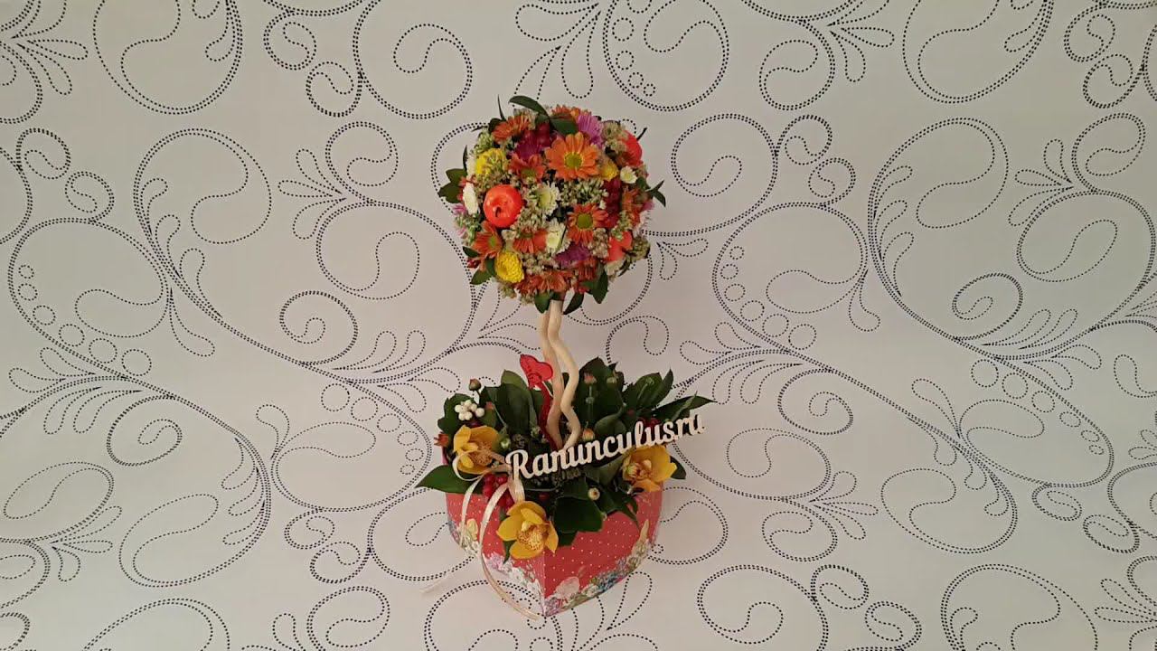 Авторский топиарий из живых цветов от известной флористической студии Ranunculus. Композиции из живых цветов: https://ranunculus.ru/kompozitsii-iz-tsvetov/ Игрушки и фигурки из живых цветов: https://ranunculus.ru/igrushki-iz-tsvetov/