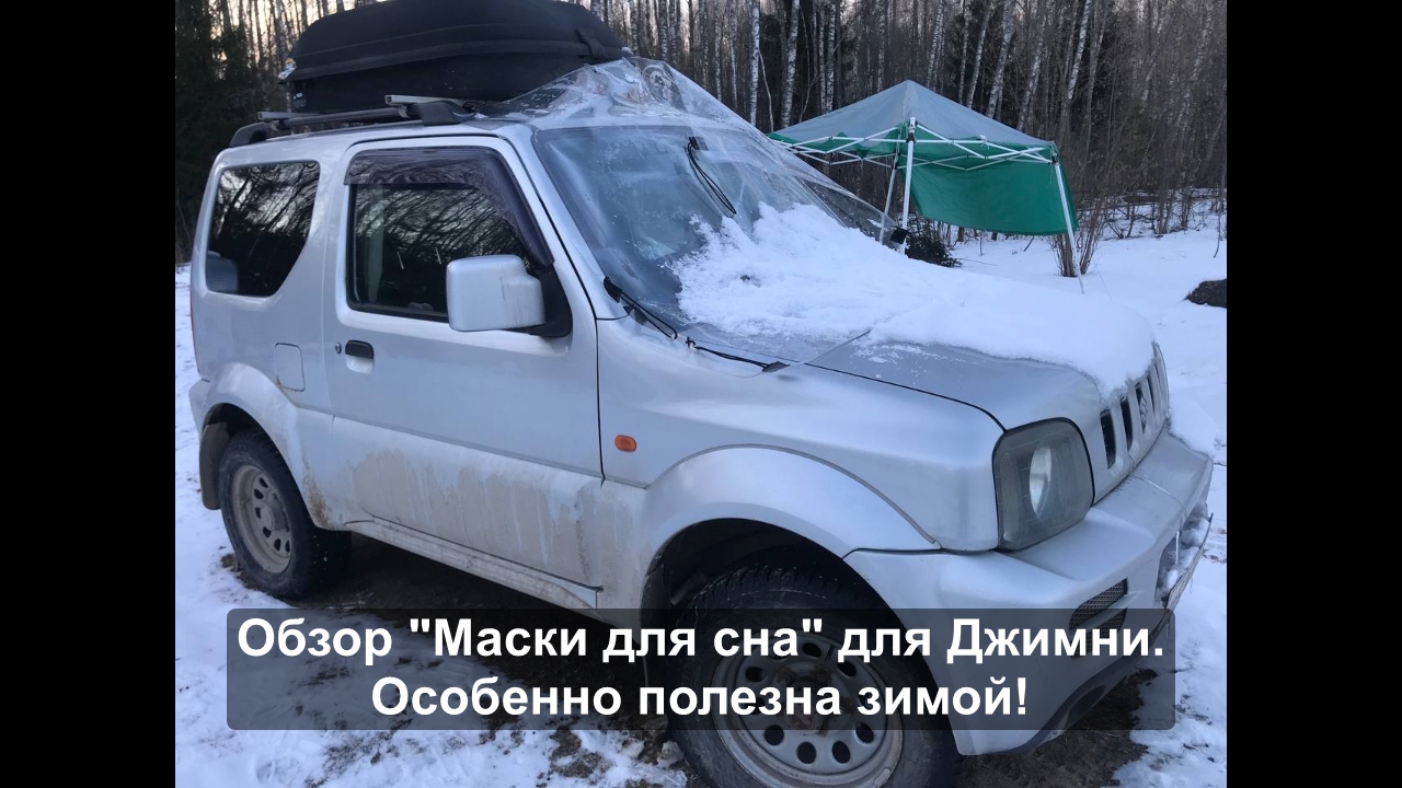 Прошедшей зимой я сшил для Джимни накидку на лобовое стекло. Я назвал ее "маска для сна". Самого шитья там было немного (только крепежные резиночки), больше было примерок и резки материала. Изначальная идея была - ускорить чистку лобового стекла и зоны дворников от снега. Но установив маску на место, понял, что она будет еще полезна: - весной, летом и осенью для защиты от семян, сережек, иголок и листьев, которые сыпятся сверху и забиваются под щетки-дворники - круглый год для уменьшения количества воды, попадающей в зону печки - летом, если под маску подложить отражающий тепло и лучи материал. Это защитит от перегрева салона, если машина стоит под прямыми солнечными лучами.