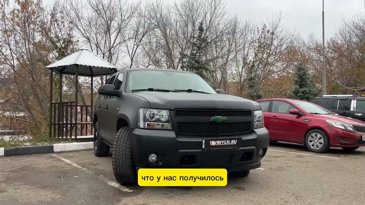 https://vinyl16.ru/ Работа над Chevrolet Tahoe подошла к концу, поэтому давайте посмотрим что у нас получилось. Во-первых, мы оклеили кузов чёрной матовой плёнкой, а не просто матовой, как могло показаться в самом начале. Но даже так она выгодно подчеркнула все грани, все выпуклости, а также защитила лакокрасочное покрытие от сколов, царапин и других внешних повреждений. А во-вторых, дополнили новый костюмчик полным антихромом. Покрасили все элементы и даже не забыли про диски. Таким образом, сделали новый образ более стильным и дерзким.