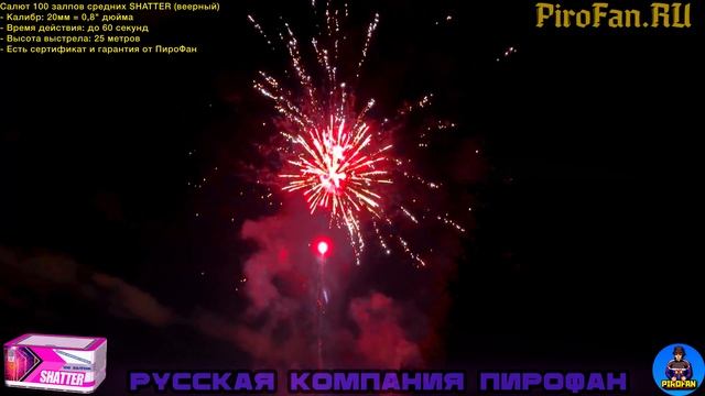 https://avito.ru/brands/PiroFan Салют 106 залпов средних MC126 Shatter (веерный) - Калибр: 20мм = 0,8" дюйма - Время действия: до 60 секунд - Высота выстрела: 25 метров - Есть сертификат и гарантия от ПироФан