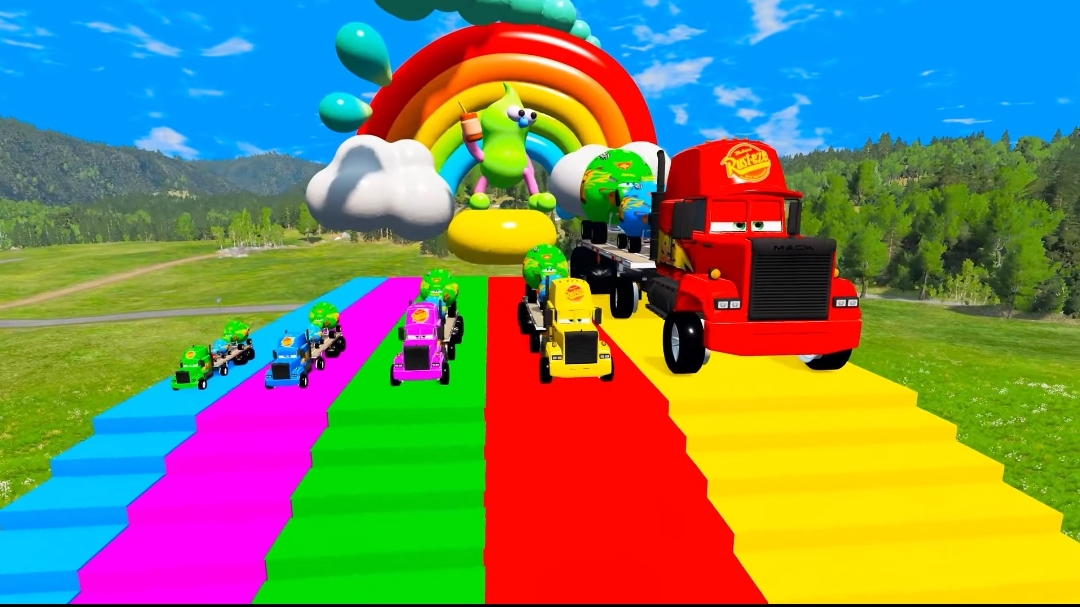 Большие грузовые машинки проходят препятствия, весёлые тачки
