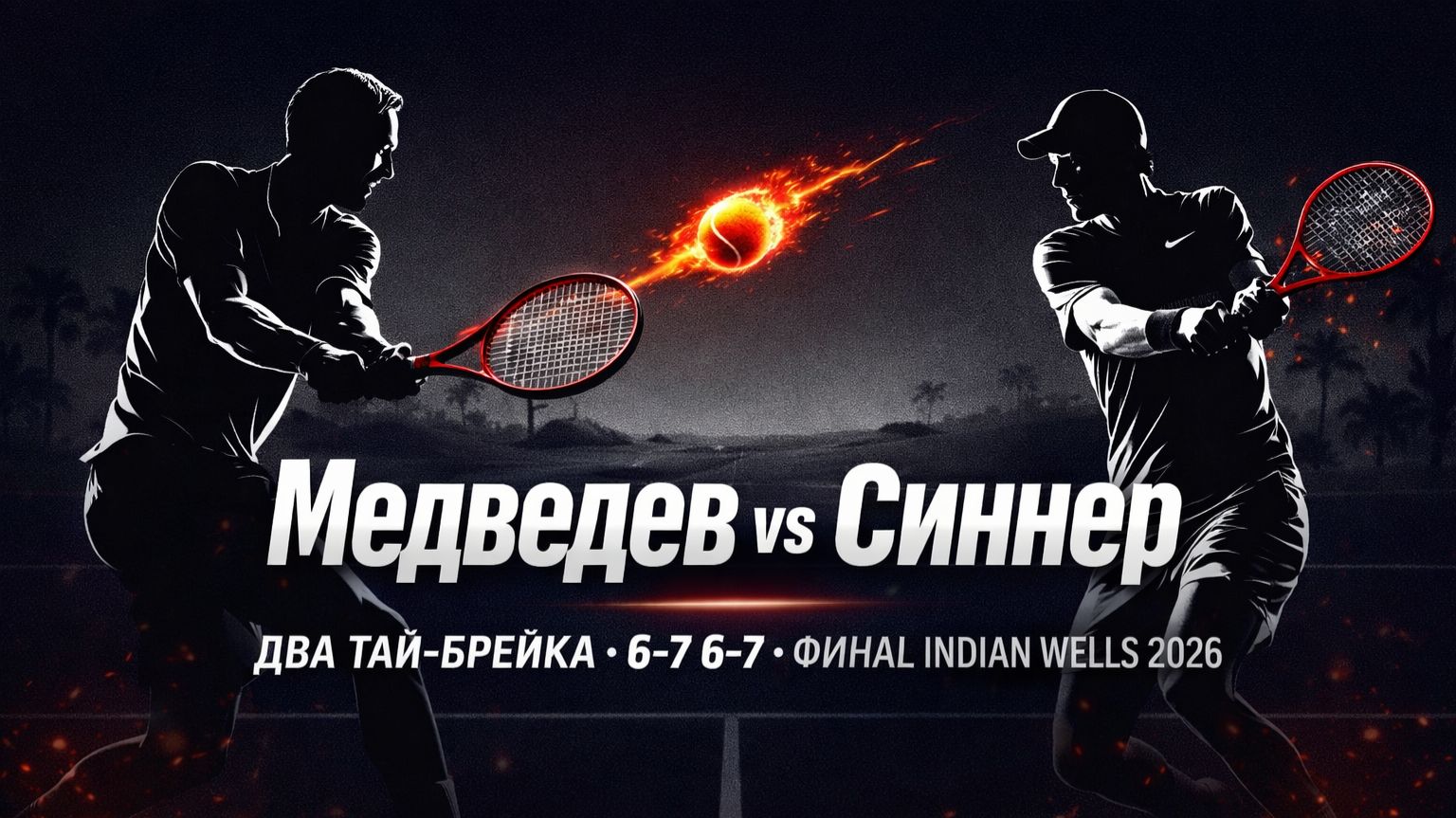 Финал престижного турнира в Индиан‑Уэллсе получился равноправным для Даниила Медведева: в напряжённой борьбе он уступил Яннику Синнеру в двух сетах. Оба сета завершились на тай‑брейке с минимальным перевесом итальянца — 6:7 (6:8) и 6:7 (4:7)