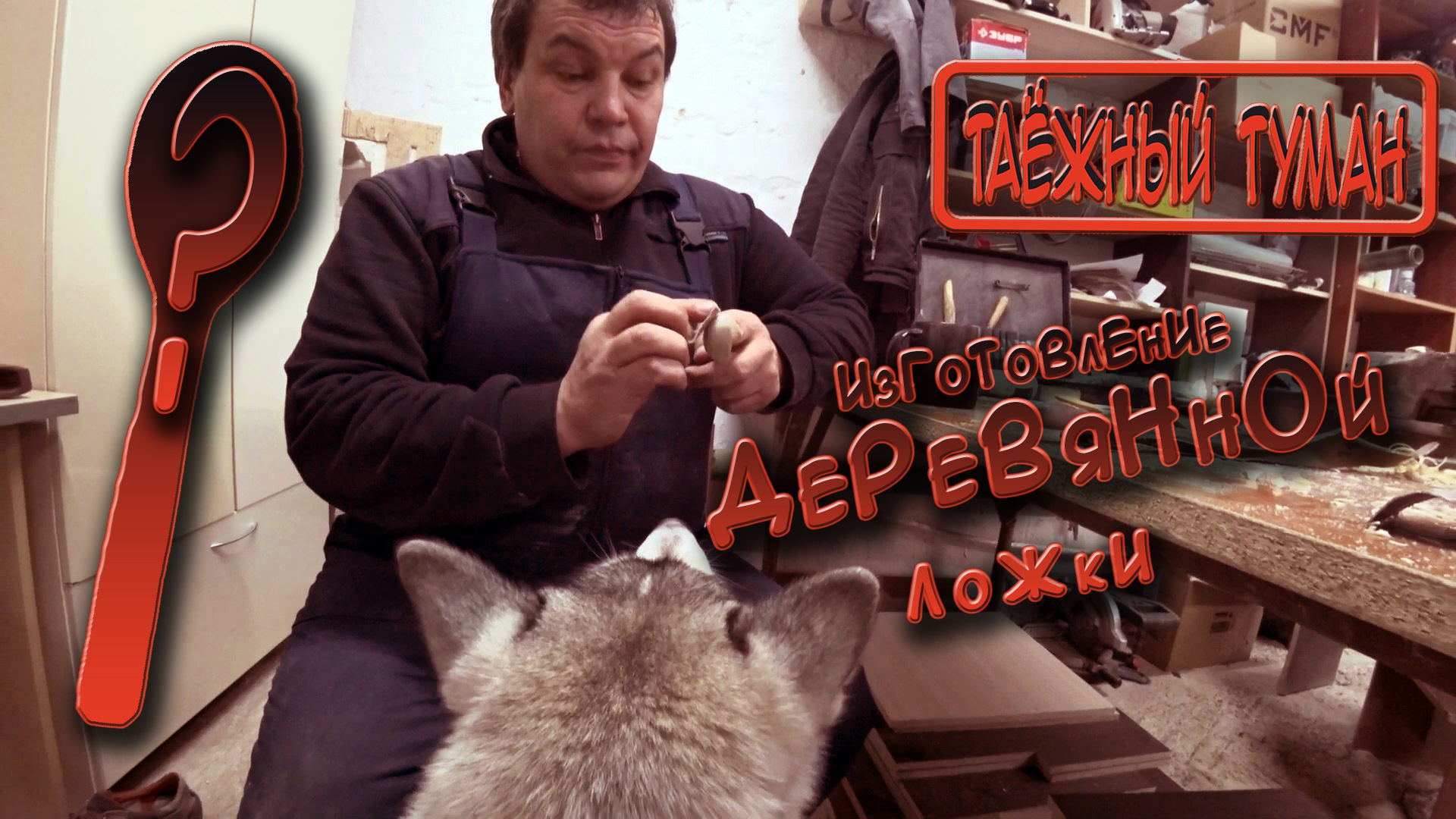 В морозный воскресный вечер Константин давал мастер класс на тему Изготавливание деревянной ложки. Туман внимательно следил за изготовлением
