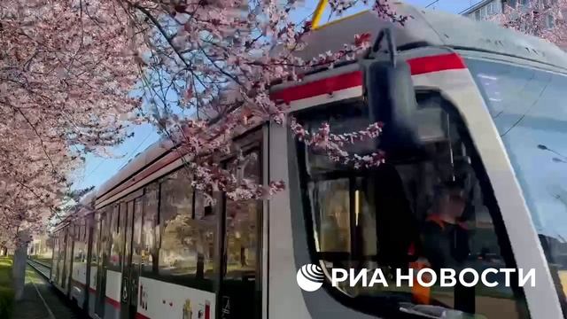 Эффектное цветение слив в парке Галицкого в Краснодаре