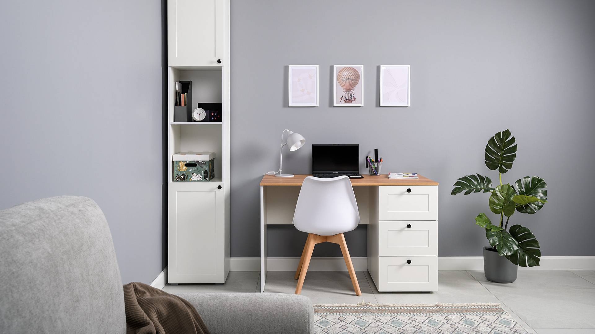Габариты стеллаж: 400 х 418, В 2296 мм Габариты стол: 1200 х 660, В 754 мм Компактное решение для организации рабочего места в лаконичном дизайне. Продуманная организация хранения для документов и канцтоваров.