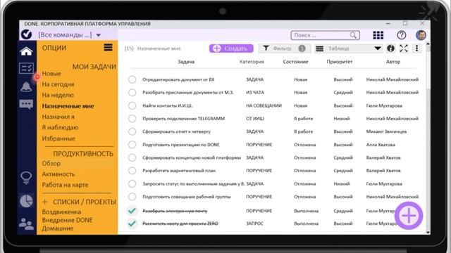 Описание одной из особенностей интеллектуальной системы работы с задачами D.One - работа с дашбордом руководителя