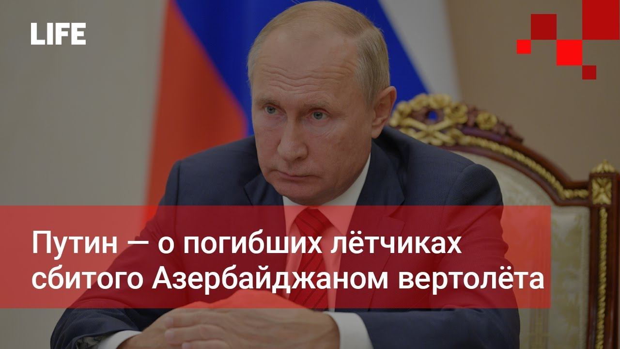 Путин почтил минутой молчания членов экипажа сбитого Азербайджаном вертолёта. Президент попросил Минобороны оказать всю необходимую помощь семьям погибших лётчиков. Подробнее: https://t.me/Lshot Подпишитесь на канал Life | Новости - https://goo.gl/7MElrH Смотрите также: Viber - https://viber.com/lifenewsru Телеграм— https://t-do.ru/Lshot ICQ - https://icq.com/chat/AoLEmf1sCS3TP_VTVRU Официальный сайт http://Life.ru/ ➤Life в Vk - https://vk.com/life ➤Life в Twitter - https://twitter.com/lifenews_ru ➤Life в OK.ru - https://ok.ru/lifenews ➤Life в Facebook - https://www.facebook.com/lifenews.ru Life – первый по срочным новостям! Эксклюзивные видео по самым главным темам дня, прямые включения с мест событий, топовые ньюсмейкеры в студии – главные особенности Life