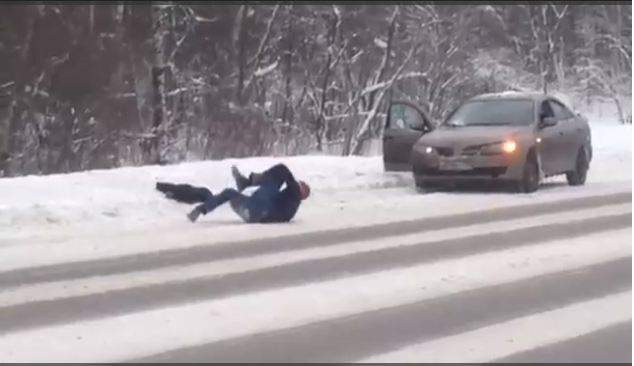 Неадекват устроил танцы на дороге