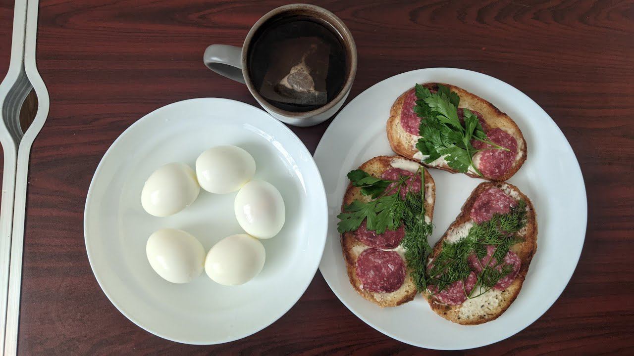 ЛЕГКИЙ ПЕРЕКУС 5 ЯИЦ И 3 БУТЕРБРОДА С КОЛБАСОЙ И ЧАЕМ