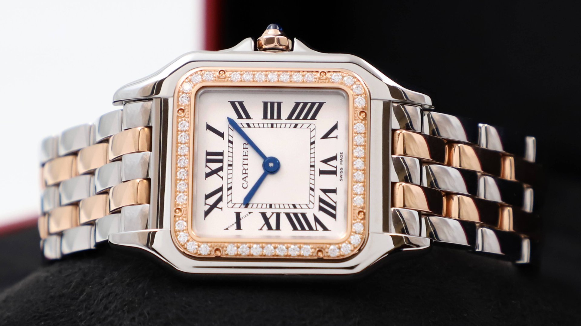 Женские часы в корпусе из нержавеющей стали, розового золота 18 карат, украшены бриллиантами. Размер: 29 мм х 37 мм. Циферблат серебристого цвета. https://spbluxwatches.ru/catalog/watches/cartier/cartier-panthere-de-cartier-medium-29-x-37-mm-w3pn0015/ ⌚ https://spbluxwatches.ru/ ⌚
