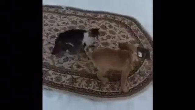 Кот против щенка!!!