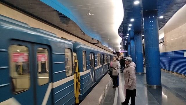 Электропоезд 81-717.5 (в народе "номерной") прибывает на станцию Дунайская (Петербургский метрополитен). В составе есть вагон с сиденьями, окрашенными в цвет линии. Март 2023 г. #метро #спбметро #метрополитен #номерной