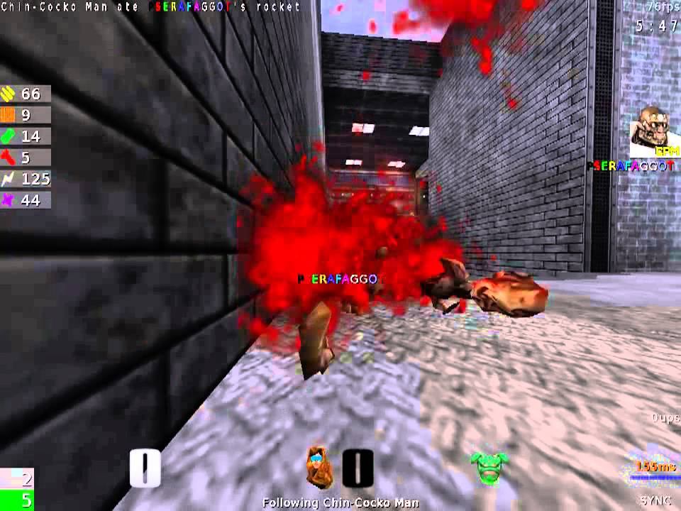 Frame rate is a little choppy, and I only have the demo from Faz's point of view, but eh, whatever. -=Result Spoiler=- At the end when I'm running away from Faz, I only had 1 health left. If he had gotten an splash damage with those grenades, or had come after me instead of going for the lightning gun, he would have won. He rage quit after that BS rail.