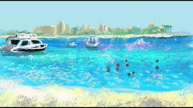Морской пейзаж - процесс создания рисунка в Procreate