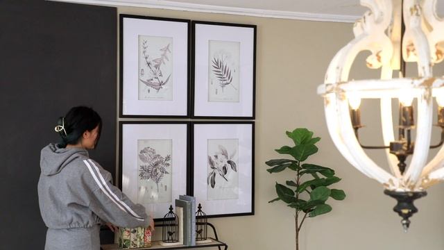 Набор панно включает в себя четыре карандашные репродукции с подробным изображением садовых растений. Представленные растения в виде магнолии, пижмы, валерианы и цикория, отмечены своим научным названием и красивым шрифтом.