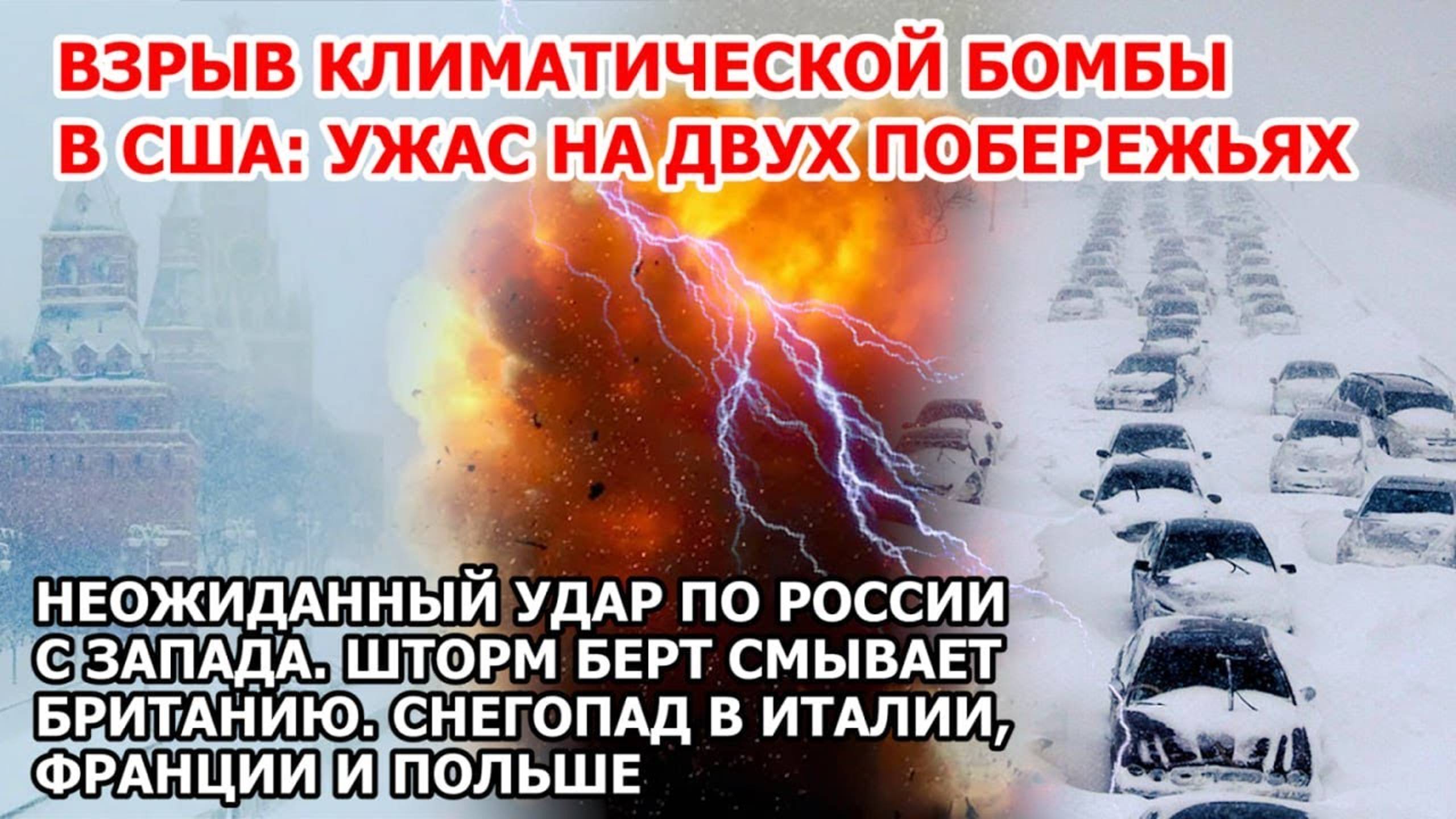 Взрыв климатической бомбы в Америке Наводнение США Шторм Британия. Снег Москва Италия Франция Пол
