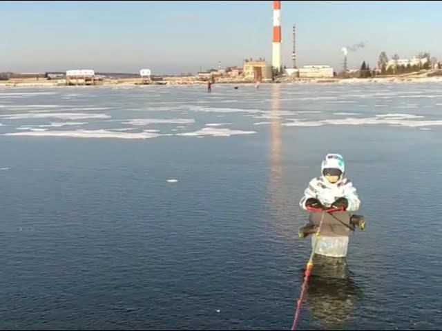 Дрифт на льдине на Лысьвенском пруду. Ноябрь 2020