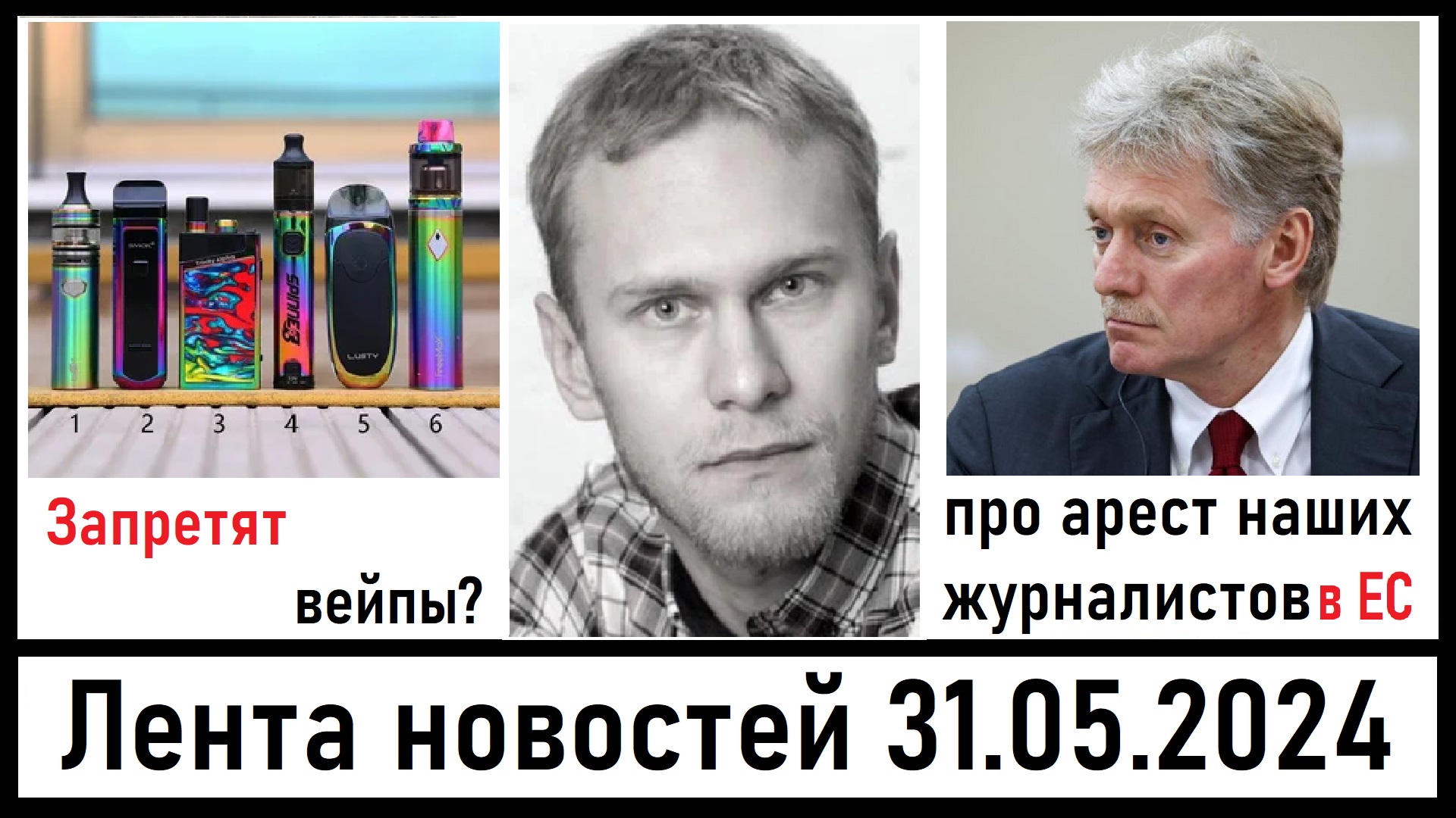 Новые проекты в Госдуме! Умер актёр Дмитрий Липинский! Лента новостей 31.05.2024 00:00 Законопроект о полном запрете продажи вейпов обсудили в Госдуме! 01:30 Умер актёр Дмитрий Липинский в 34 года! 02:35 Мишустин утвердил новый состав президиума российского правительства! 03:10 Песков назвал безумцами членов Фонда Клуни за мысль об аресте журналистов РФ! 04:50 "Налоговом кешбэк" для семей с детьми - - - - - - - - - - Ссылка на мой телеграм: https://t.me/erpager