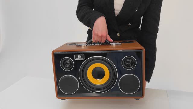 Караоке система с двумя беспроводными микрофонами и мощной акустической системой, мощностью 300 Ватт для дома и больших помещений. Стильный дизайн, выполненный в ретро-хайтек стиле, ручка для удобства переноски, Hi-Fi звук, встроенный сабвуфер, обновленный звуковой процессор, два микрофона с разъёмами для хранения - всё что нужно для хорошего досуга и веселого время провождения! Караоке для детей и для взрослых.