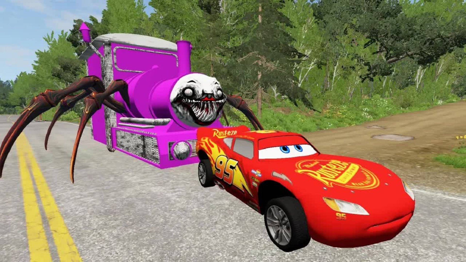 Эпический побег от Молнии Маккуина, пожирателя драконов, Пожирателя Матери, пожирателя роботов Мака |BeamNG.Drive