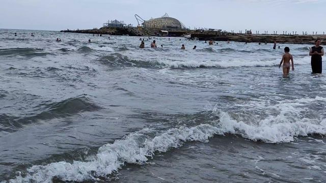 Пляж на косе, считается одним из самых чистых в Дербенте.