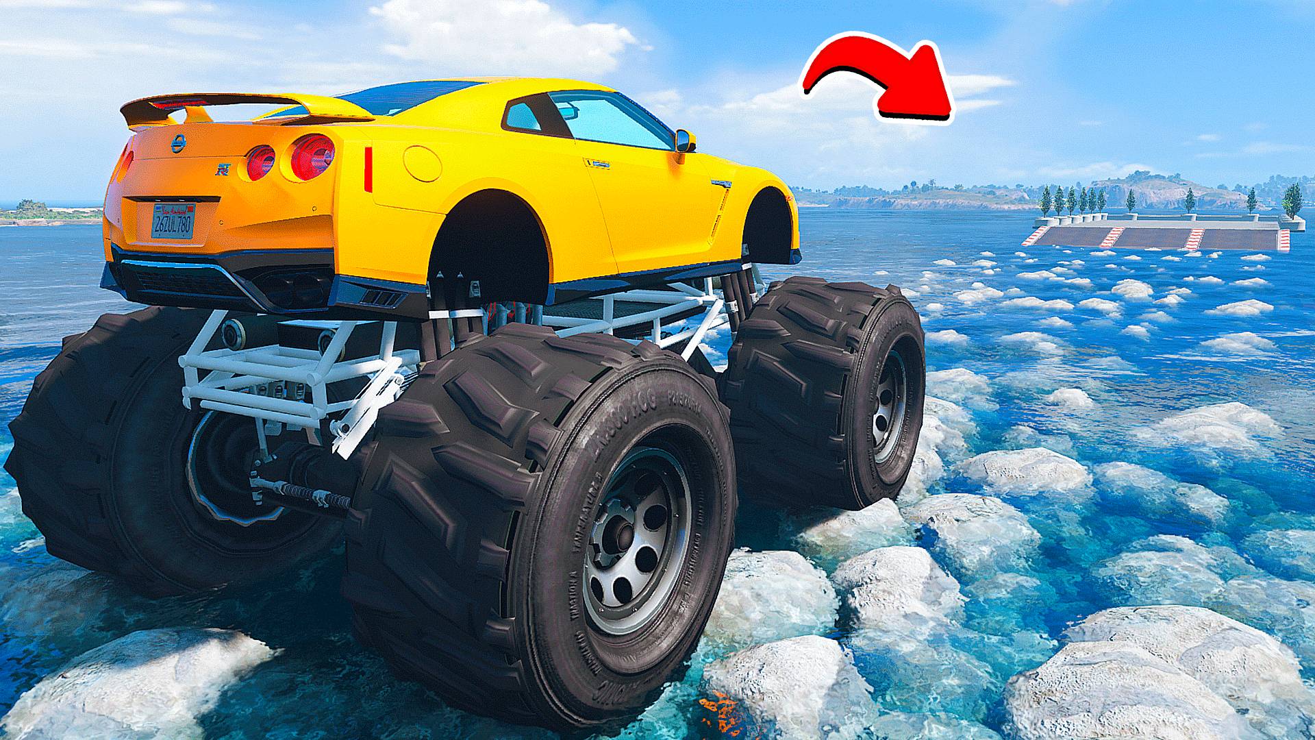 ПРОЕХАЛ ВОДНЫЕ КАМНИ на ГИГАНТСКОМ НИССАН ГТР в ГТА 5 МОДЫ - ЭКСПЕРИМЕНТЫ в GTA 5 MODS