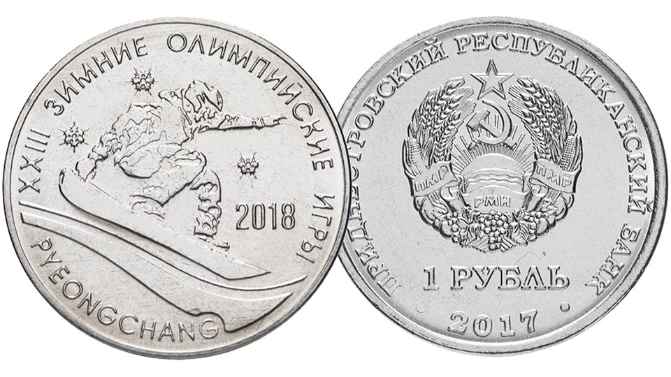 Монета 1 рубль Приднестровья Зимние Олимпийские Игры в Пхёнчхане.