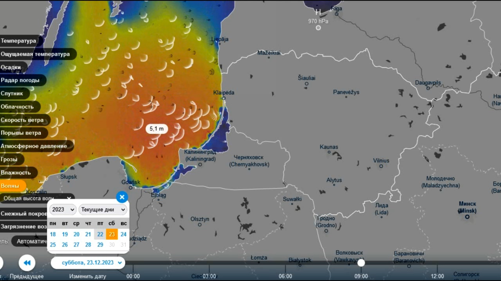 23.12.2023 на балтийском побережье Калининградской области ожидается штормовая погода.
