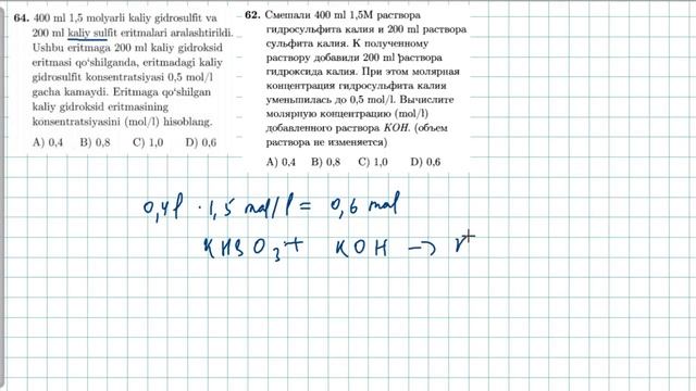 Eritmalar 64-test. растворы 62-тест. | KIMYO |