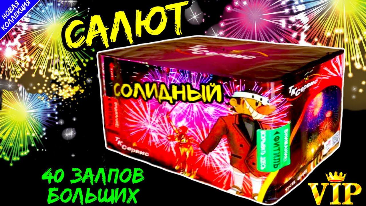 Официальный магазин: https://vk.com/PiroFan Салют 40 больших залпов, фейерверк "Солидный" - Калибр: 25мм = 1" дюйм - Время действия: 55 секунд - Высота выстрела: 25 метров - Гарантия и сертификат от ПироФан