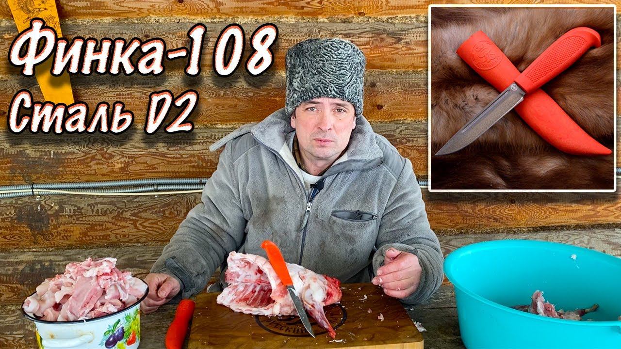Обвалка кролика на колбасу ножом Финка-108 из стали D2. Русский булат