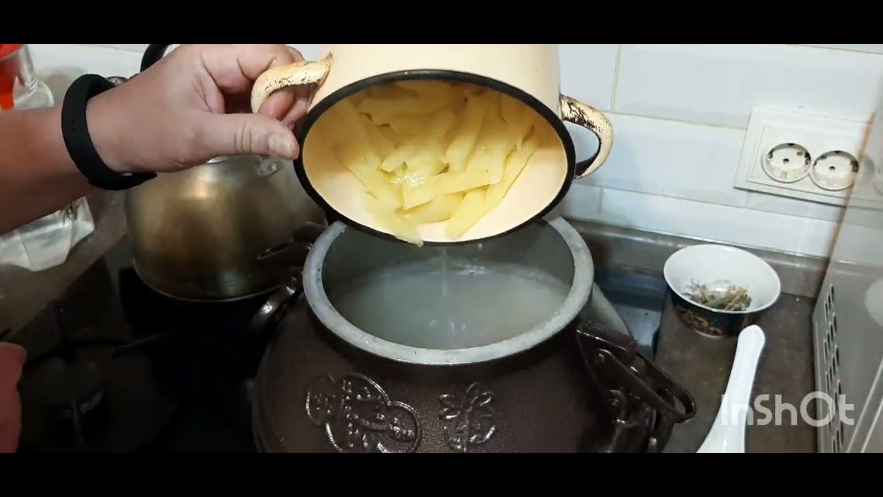 Гороховый суп из банки в казане