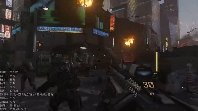 ОС: Windows7(64bit) драйвера: 365.19 RAM: 10Gb Настройки графики выборочные под GTX780, оверлэй прилагается. Только пройдя всю игру я наконец понял как хочу записать видео геймплея первого уровня с высадкой в Сеуле. Сразу же прошу прощения что не на ультранастройках, моя 780-ая не тянет, а играть меньше чем 59 FPS в шутеры невозможно.