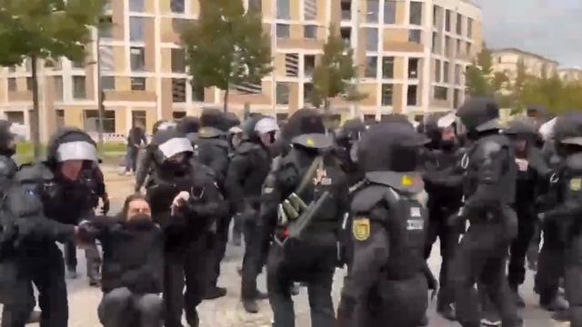 ?? #Germany Митинг в Германии закончился в автозаке⚠️☝️ ? На видео разгон мирных протестующих, которые выступили против курса правительства в немецком городе Лейпциг.