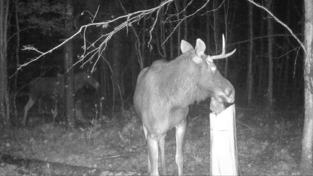 Лосиное семейство на солонце. Ленинградская область.