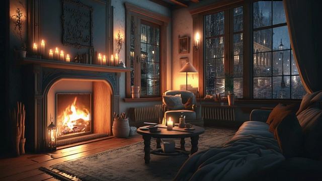 Крепкий Сон в атмосфере уютной комнаты с Камином и звуками Дождя за окном.