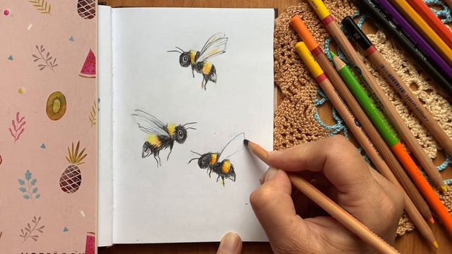 Шмель, цветные карандаши