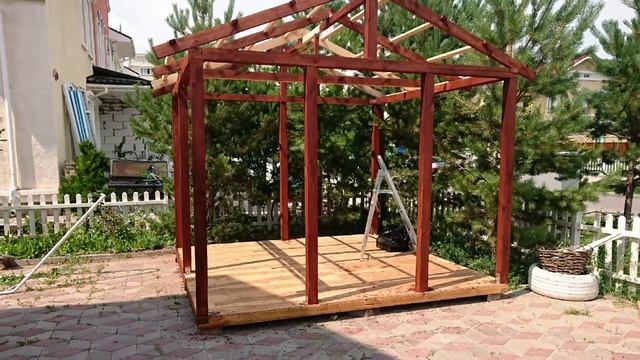 Сделал беседку за 7 дней. На материалы (не струганные) потратил 160.000 тенге.