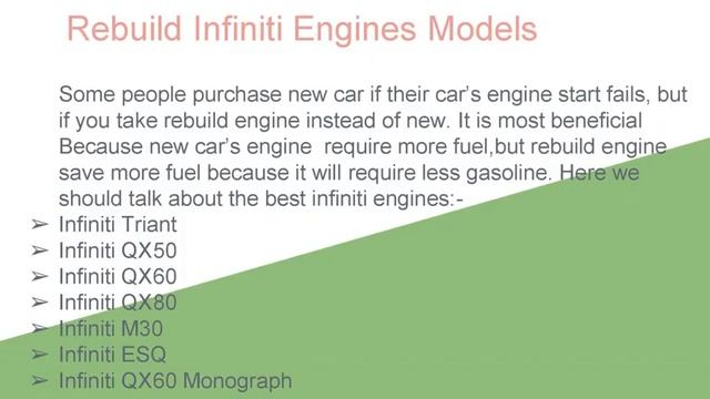 Infiniti Refurbished Engines|USA|Louisiana Infinite is such a name in automobiles that does not need any introduction. If you want the best engine for your automobile, a refurbished engine from Autotech edge engines is offered with rebuilt Infiniti engines that are built to exceed OEM(Original Equipment Manufacturer specifications). Here we will tell you about the Rebuilt Engine of the Infiniti cars.
