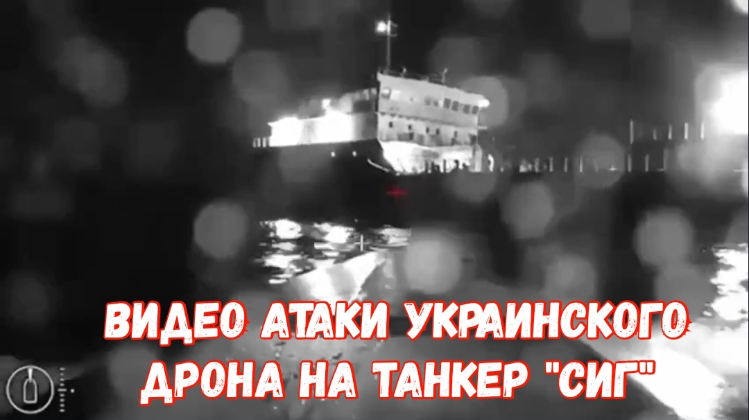 видео атаки украинского дрона на Танкер "Сиг"