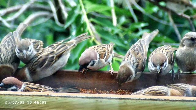 Лето, кормушка на окне, воробьи ....