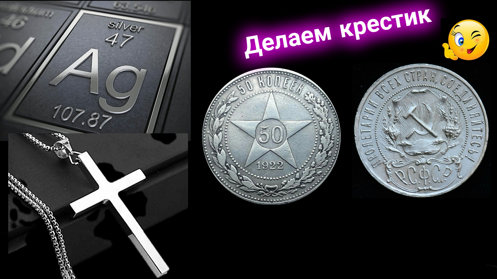 Проба серебра. Монета. Делаем крестик.