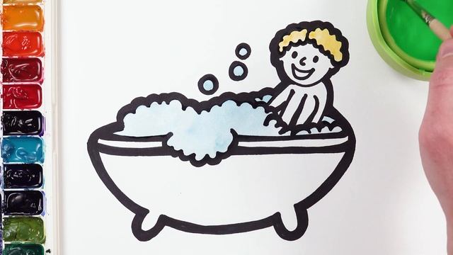 Учимся рисовать и раскрашивать! Малыш в ванной - Блестки и акварель! Искусство и обучение