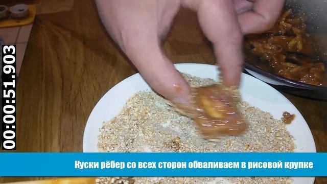 Свиные ребра на пару в молотом обжаренном рисе (粉蒸排骨) Блюдо интересно тем, что в нём в качестве панировки применяется предварительно обжаренный и раздробленный рис. При этом в пароварке такой рис доводится до готовности вместе с мясом и получает не только приятный вкус, но и нормальную консистенцию. Рецепт "подсмотрен" в сообществе Китайская кухня Живого Журнала. Больше вариантов работы с китайским тесаком #ЦайДао можно увидеть в группе ВКонтакте http://vk.com/caidaokitchen, которая посвящена техникам работы с #ЦайДао. Китайский тесак — не только инструмент, которым нарезают продукты. Некоторые китайские повара не без оснований считают, что #ЦайДао заменяет практически полный спектр инструментов на кухне. Состав: Свиные ребра - 400 г Бобовый чили соус - 1 ст. ложка Мисо-паста - 3 ст. ложки (2-3 кубика) Рис - 100-150 грамм Смесь 5 специй - 1 ч. ложка Соль - по вкусу Сахар - 1 1/2 ч. ложки Глутамат натрия - 1/3 ч. ложки Соевый соус светлый - 1 ст. ложка Соевый соус тёмный - 1 ч. ложка Имбирь - 1,5 см Чеснок - 2 зубчика Зеленый лук - 2 пера Кунжутное масло - 1 ч. ложка Растительное масло - 2 ст. ложки