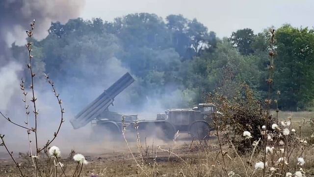 РСЗО "Ураган" работает по позициям ВСУ на Донбассе